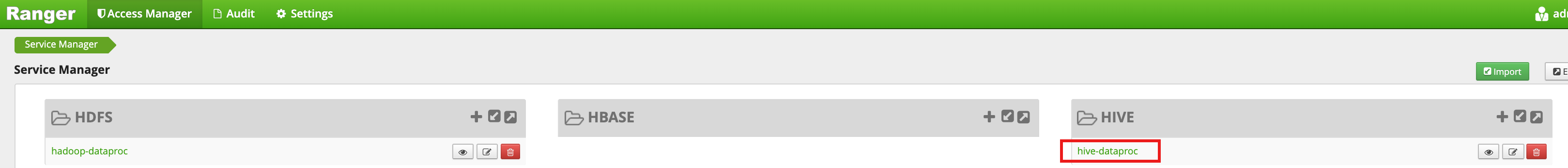 hadoop-dataprocfrom the Ranger Admin UI.