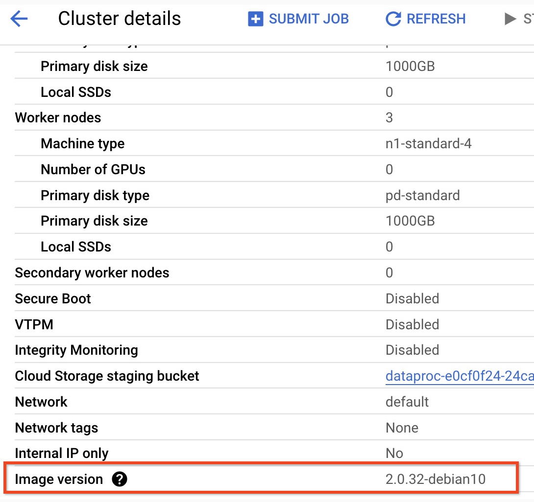 gcloud dataproc clusters create cluster-name \ --region=region \ --optional-components=HBASE,ZOOKEEPER \ --num-workers=3 \ --enable-component-gateway \ --image-version=2.0 \ --properties='spark:spark.driver.extraClassPath=/etc/hbase/conf:/usr/lib/hbase/*,spark:spark.executor.extraClassPath=/etc/hbase/conf:/usr/lib/hbase/*'