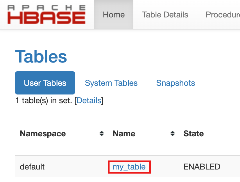 to open the Apache HBase UI.