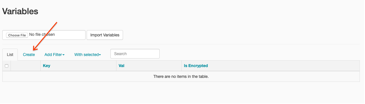 gcloud composer environments run ENVIRONMENT --location LOCATION variables set -- project_id PROJECT_ID - In the toolbar, click Admin > Variables.