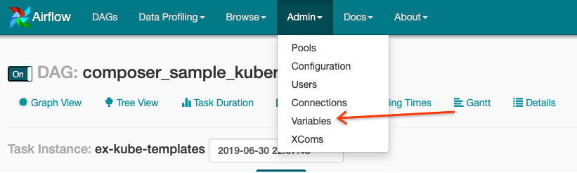 1. Open the Airflow web interface.