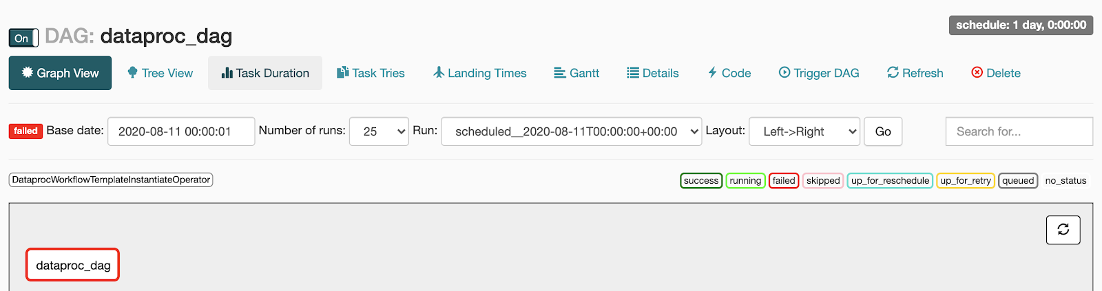 dataproc_workflow_dag). - En la página de detalles de los DAG, haz clic en Graph View.