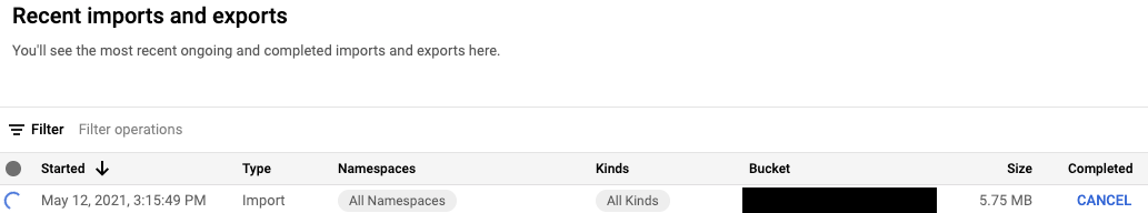 Sie können laufende Export- oder Importvorgänge auf der Seite Import/Export der Google Cloud Console abbrechen.