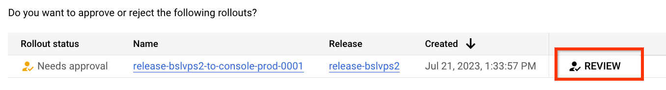 Instanziieren Sie Ihre Bereitstellungspipeline, indem Sie einen Release über dieGoogle Cloud -Konsole erstellen.