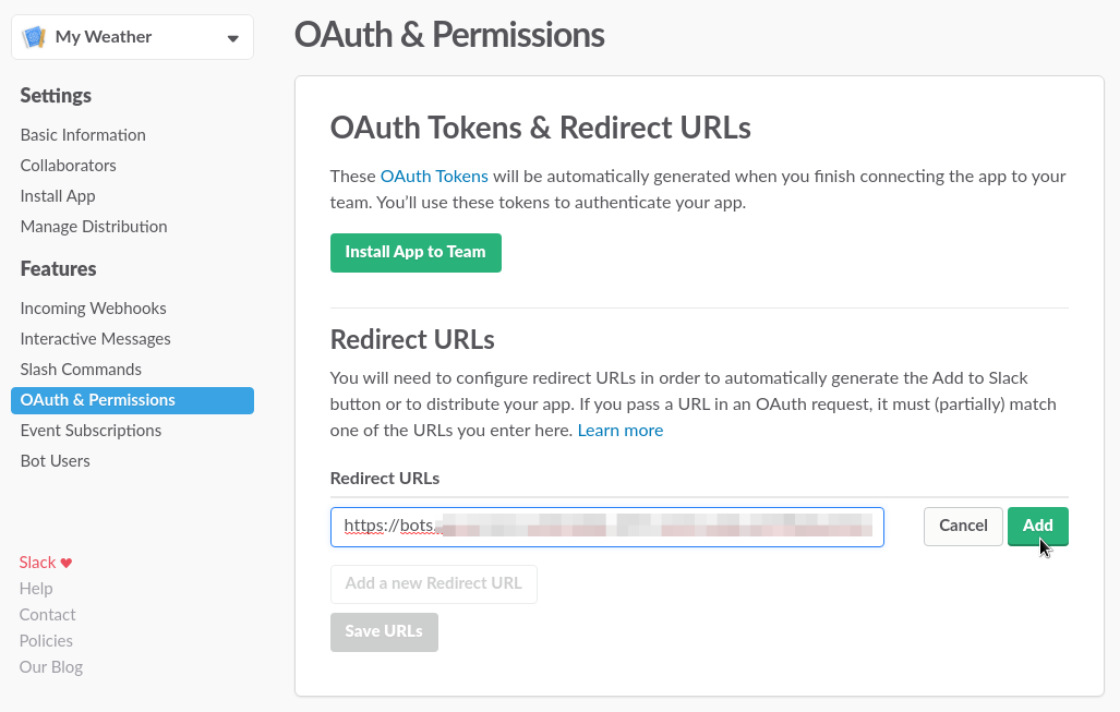 Añadir tu bot de Slack a un equipo