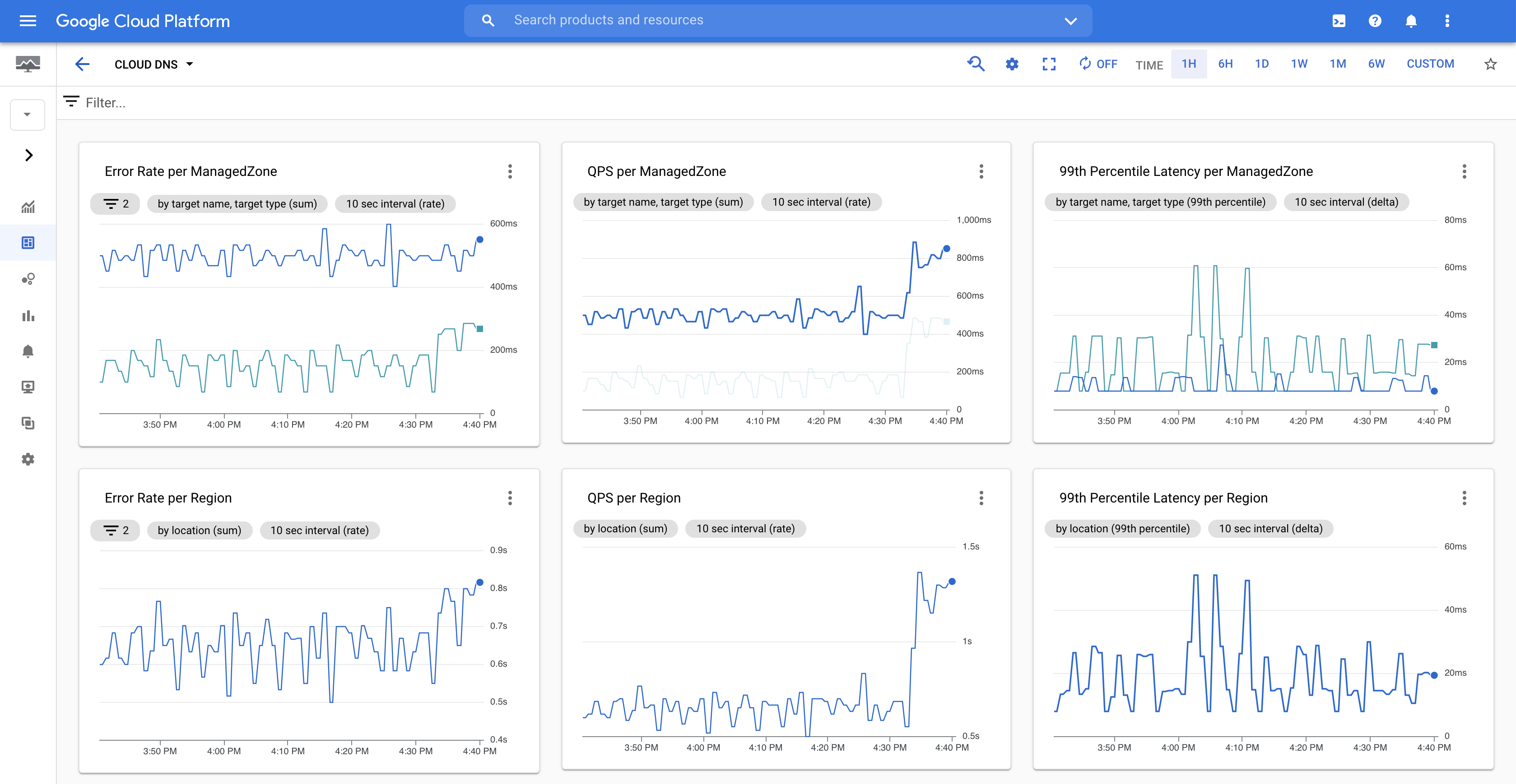 לוח הבקרה של Cloud DNS Monitoring (לחצו כדי להגדיל).
