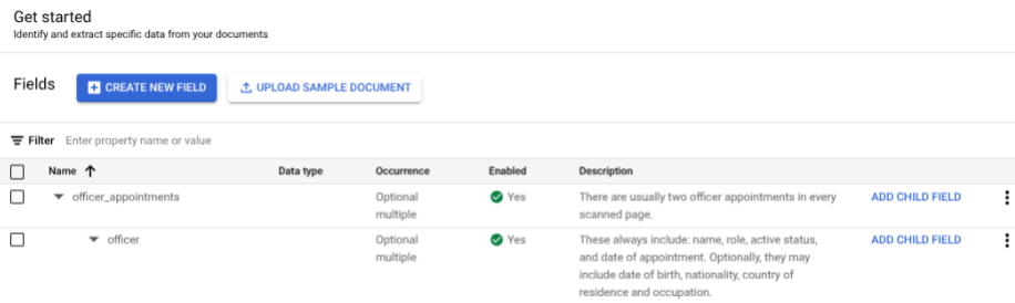 Mit Property-Beschreibungen können Sie ein Modell trainieren, indem Sie beschreiben, wie die Felder mit Labels aussehen. Sie können für jede Einheit zusätzlichen Kontext und Statistiken angeben. So kann das Modell trainiert werden, indem Felder abgeglichen werden, die der von Ihnen angegebenen Beschreibung entsprechen. Dadurch wird die Genauigkeit der Extraktion verbessert. Eigenschaftsbeschreibungen können sowohl für übergeordnete als auch für untergeordnete Einheiten angegeben werden.