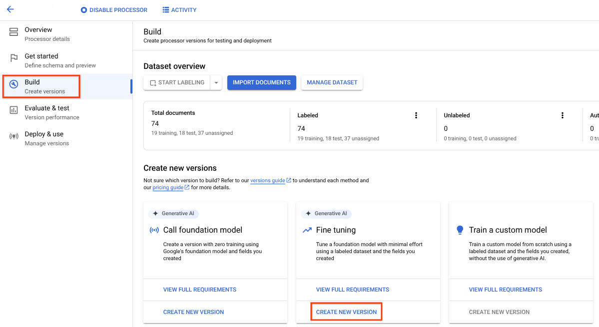 您的模型现已部署。发送到此处理器的文档会使用您的自定义版本。 您可以评估模型性能,以检查模型是否需要进一步训练。
