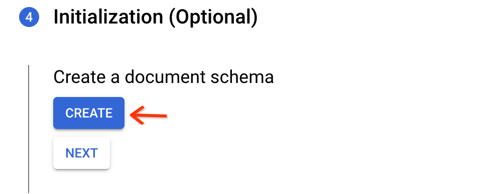 Click Create in the initialization step. This creates a default schema that can be used for OCR-extracted PDFs or TXT files. It contains the raw text field for indexing but doesn't contain properties.