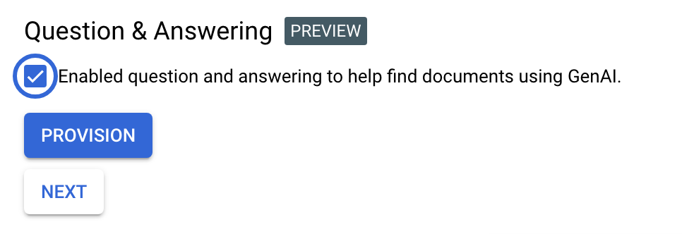 Check Question & Answering if you want to enable GenAI search in your project. See GenAI Search for more information, including how to get allowlisted to use the feature.