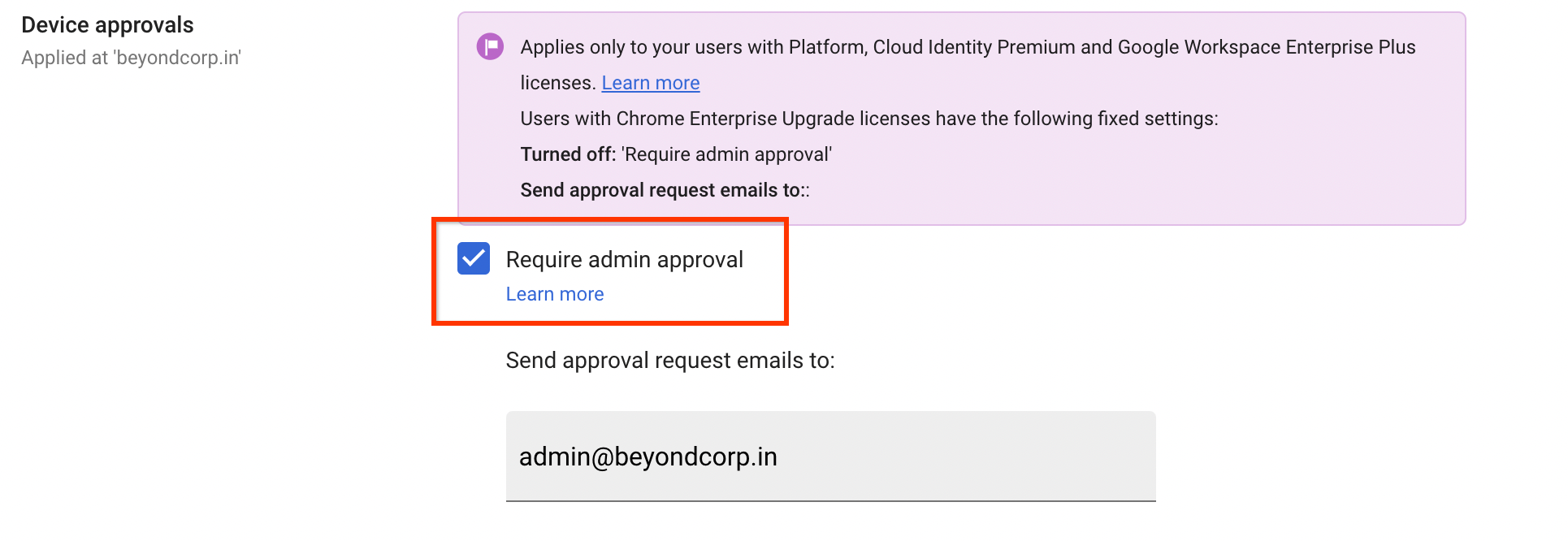 Fai clic su Approvazioni dispositivo e poi seleziona Richiedi approvazione amministratore.