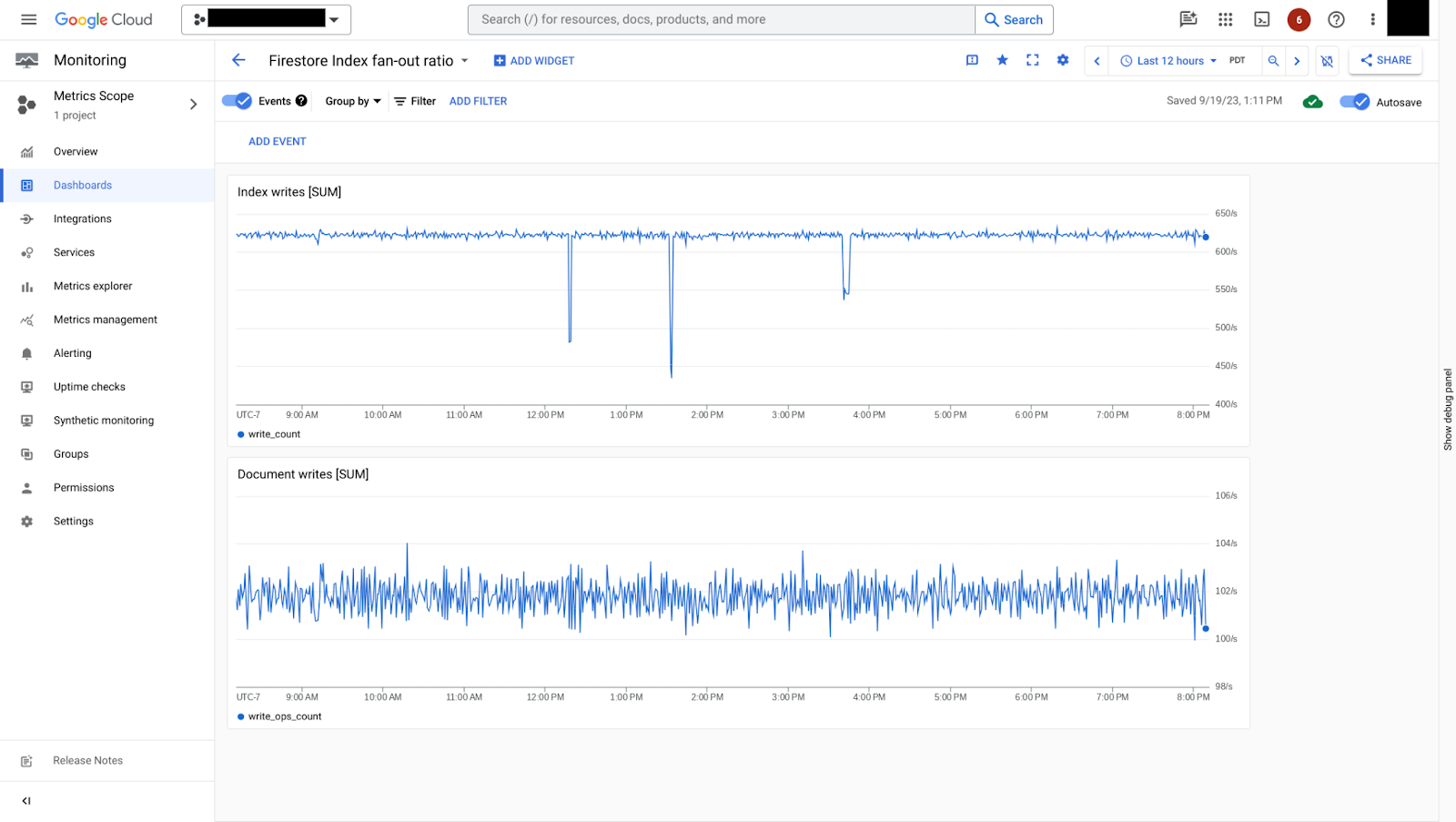 색인 팬아웃 비율을 이해하기 위해 색인 쓰기 속도를 document/write_ops_count 측정항목과 대조할 수 있습니다.