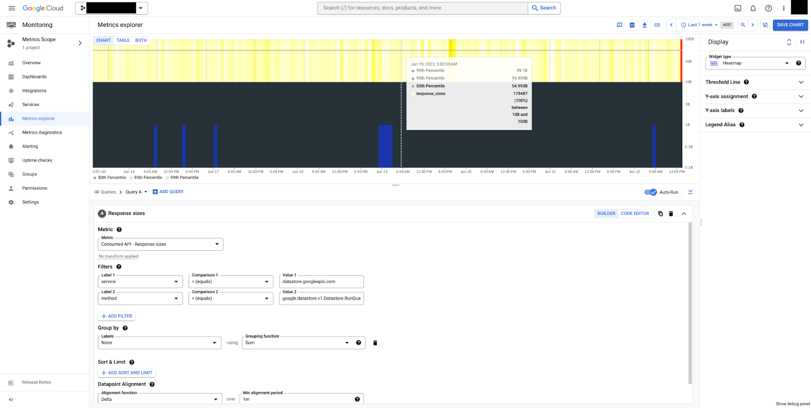 datastore_request | Datastore 프로젝트의 모니터링 리소스 유형이며 데이터베이스에 대한 분석을 제공하지 않습니다. | 두 모드 모두에 적용됩니다. |