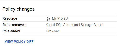 get-iam-policyuntuk mencerminkan perubahan yang ingin Anda simulasikan.Ada beberapa jenis perubahan yang dapat Anda lakukan pada kebijakan izin. Misalnya, Anda dapat menambahkan atau menghapus akun utama dari binding peran, atau menghapus binding peran dari kebijakan izinkan.