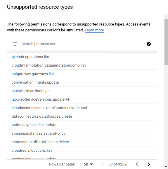 Untuk mendapatkan hasil simulasi yang paling lengkap, sebaiknya Anda memiliki izin IAM dan Google Workspace tertentu. Jika Anda tidak memiliki beberapa atau semua izin ini, Anda tetap dapat menjalankan simulasi. Namun, menjalankan simulasi tanpa izin ini dapat menyebabkan peningkatan jumlah perubahan akses yang tidak diketahui, karena Anda mungkin tidak dapat mengambil informasi yang dapat memengaruhi hasil simulasi.