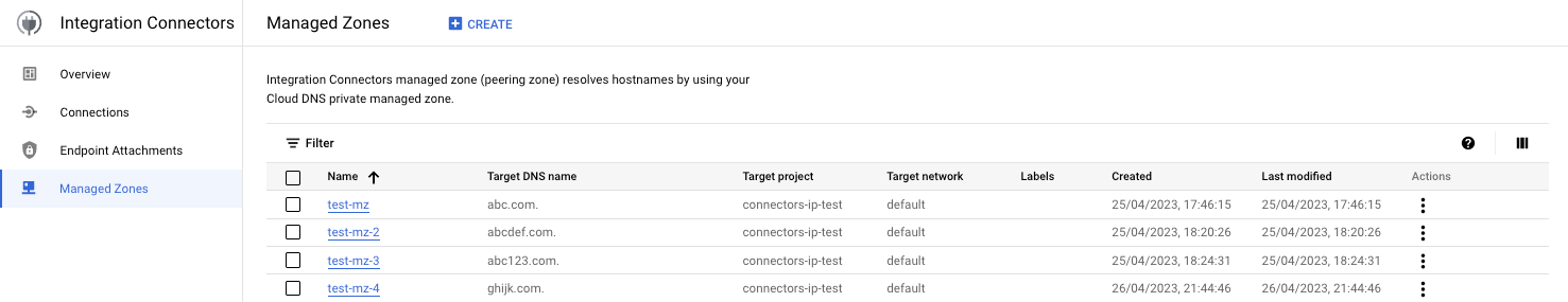 - 在 Google Cloud 專案中建立 Integration Connectors 管理區,用於 Integration Connectors。整合連接器代管區域 (對等區域) 會與 Cloud DNS 私人代管區域 (在步驟 2 中建立) 進行通訊,以便進行名稱解析。