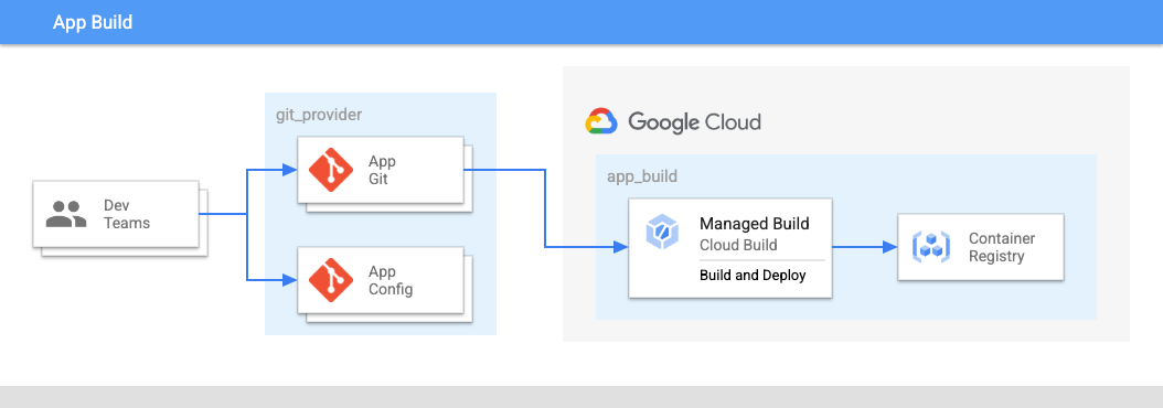 - O código das apps e das configurações é armazenado no mesmo local e as equipas de aplicações têm controlo sobre estes repositórios.