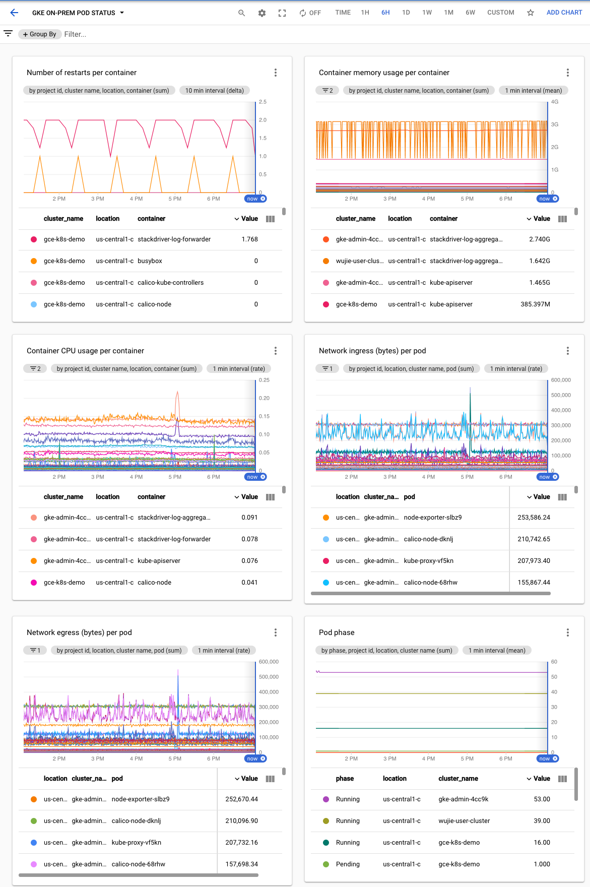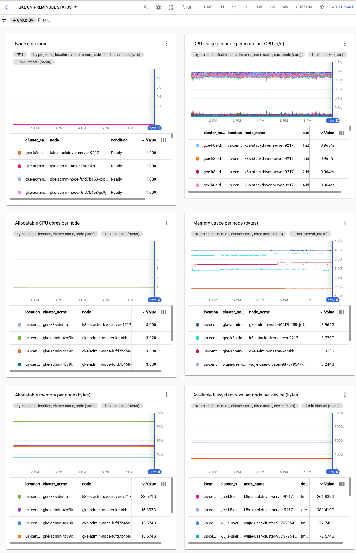 Setelah Anda membuat cluster (admin atau pengguna), praktik terbaiknya adalah membuat dasbor berikut dengan Cloud Monitoring agar tim operasi Anda dapat memantau kesehatan cluster:
