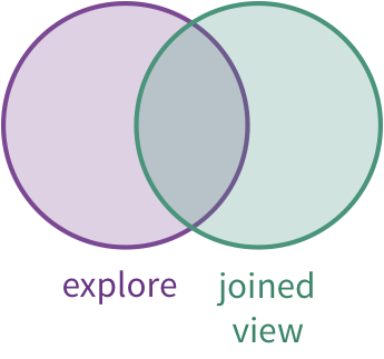 Le type de jointure full_outer (FULL OUTER JOIN en SQL) inclut toutes les lignes de l'exploration et de la vue jointe, même si aucune donnée correspondante n'est disponible dans l'autre vue.