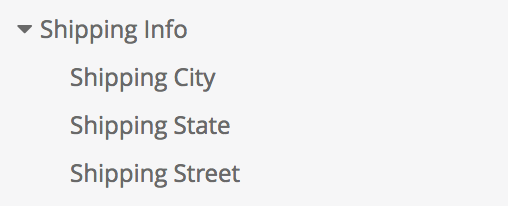 この場合、フィールドはグループ化されずに表示されるのではなく、展開可能な [Shipping Info] セクションにまとめられます。
