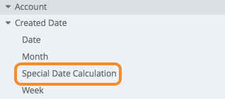 フィールド ピッカーでは、Special Date Calculation フィールドは Created Date ディメンション グループに表示されます。