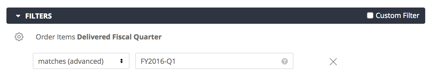Para expressões de filtro de correspondências avançadas, é possível se referir a anos e trimestres fiscais como datas absolutas ou relativas.