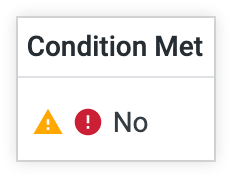 | Condition remplie | Oui ou Non, selon que les conditions d'alerte ont été remplies ou non lors de la dernière exécution de la requête d'alerte. Le symbole -- s'affiche si la requête d'alerte n'a pas encore été exécutée ou si elle a été exécutée, mais qu'il n'a pas été possible de déterminer si les conditions d'alerte étaient remplies. Cette colonne affiche des icônes d'avertissement ou d'erreur liées aux avertissements ou erreurs qui s'affichent lorsque la requête d'alerte est exécutée ou que la notification d'alerte est envoyée. Pointez sur l'icône d'avertissement ou d'erreur pour afficher le message d'erreur associé, le cas échéant.Une icône d'avertissement avec un avertissement d'alerte obsolète indique que les données de la vignette du tableau de bord n'ont pas changé entre les deux dernières requêtes d'alerte. Pour en savoir plus sur ce message, consultez la section Messages d'erreur et d'avertissement des alertes sur cette page. |