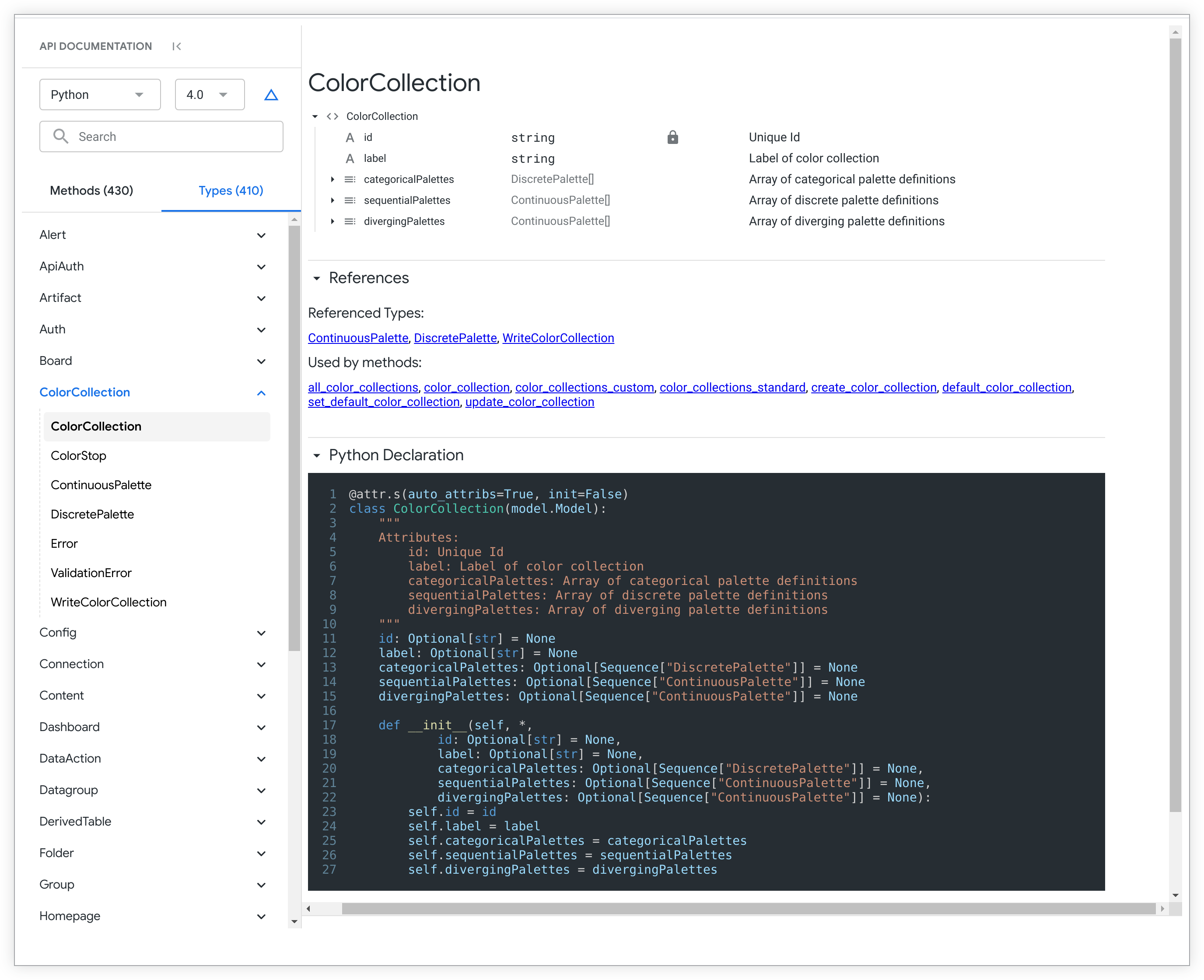 - すべての Looker API のメソッドとタイプに関するドキュメント