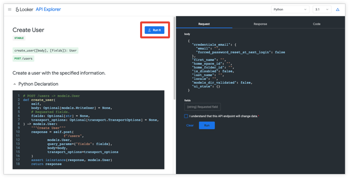 API Explorer には、Looker API で使用する次のアセットが用意されています。