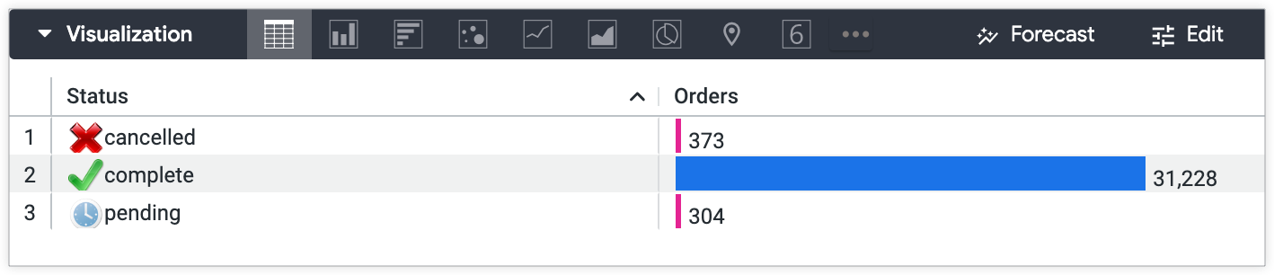 - With table calculations and emojis. This approach is ideal when the conditions that determine the formatting need to be created directly within a Looker Explore. Reference the Conditional formatting using table calculations Best Practices page to learn how to apply custom formatting to visualizations with table calculations.