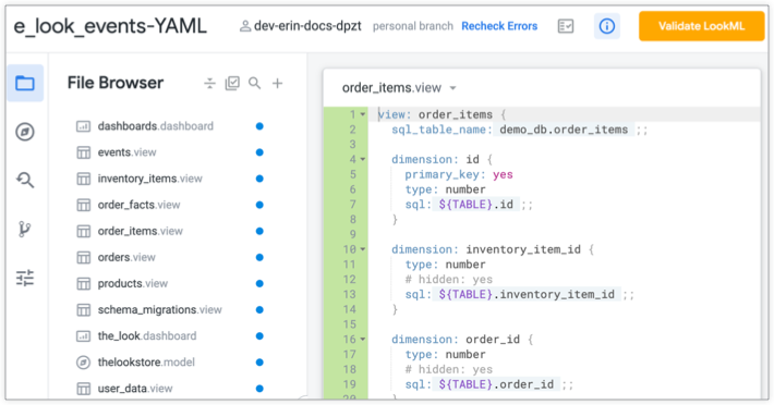 2. 您可能會在先前沒有錯誤的地方看到錯誤。如先前所述,新版 LookML 比 YAML LookML 更徹底地檢查錯誤。請查看並修正錯誤。如果無法順利解決問題,請參閱本頁結尾的「解決錯誤」一節。