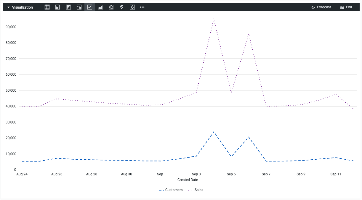 - Explore에서 시각화를 보거나 Look 또는 대시보드에서 시각화를 수정합니다.
