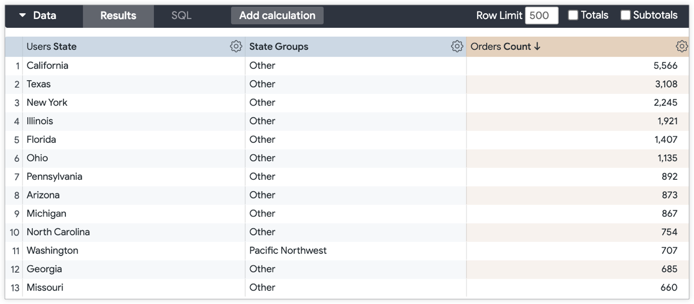 A maioria dos campos no selecionador de campos é criada pelos seus programadores do Looker. No entanto, ao usar campos personalizados, pode criar novas dimensões e medidas personalizadas ad hoc numa análise detalhada. Esta página aborda a criação e a utilização de campos personalizados para melhorar a análise de dados.