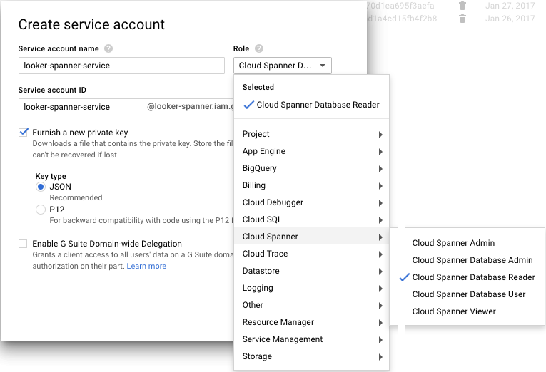 • Service account name: Enter looker-spanner-service or something similar.
