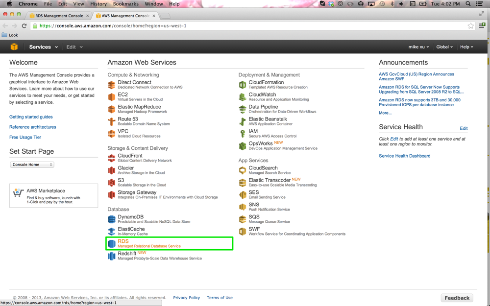 Log in and go to the AWS dashboard. In the Database section, select RDS.