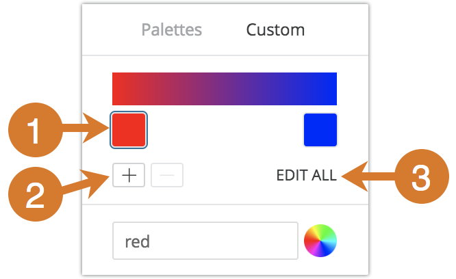 カスタム カラーパレットを作成するには、まずパレット選択ツールの [Cutsom] タブを選択します。パレットは、次のいくつかの方法で編集できます。