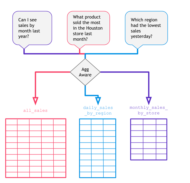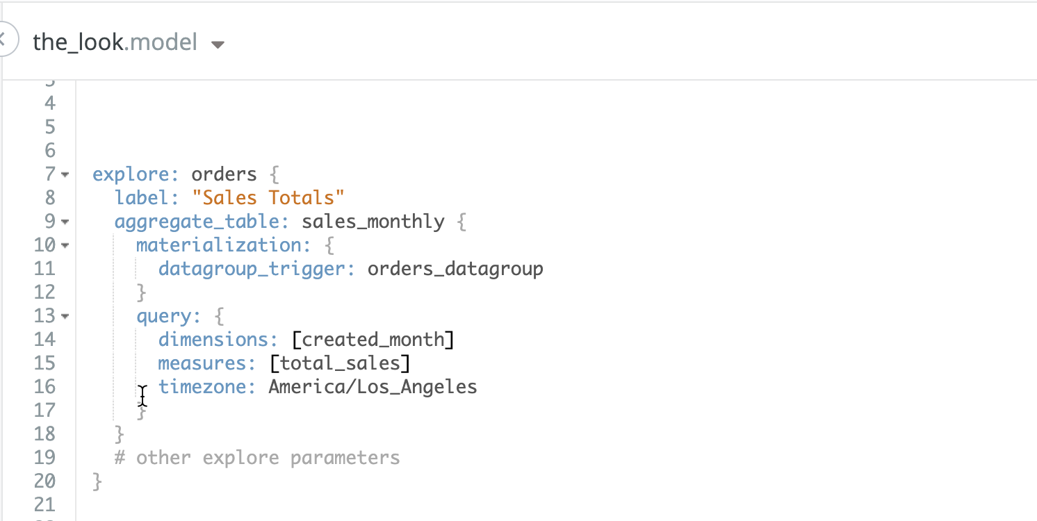materializationブロック内で次の永続化パラメータを使用できるようになりました: indexes、cluster_keys、partition_keys、distribution、distribution_style。 - 集計テーブルを Explore クエリの Filter のタイムフレームに正確に一致させる必要がなくなりました。例えば、日次のタイムフレームディメンションの集計テーブルを、週または月でフィルタリングするExploreクエリで使用できます。集計テーブルのDimensionのタイムフレームが、ExploreクエリのDimensionおよびFilterのタイムフレームと同等またはそれより細かい場合、集計テーブルをExploreクエリで使用できます。