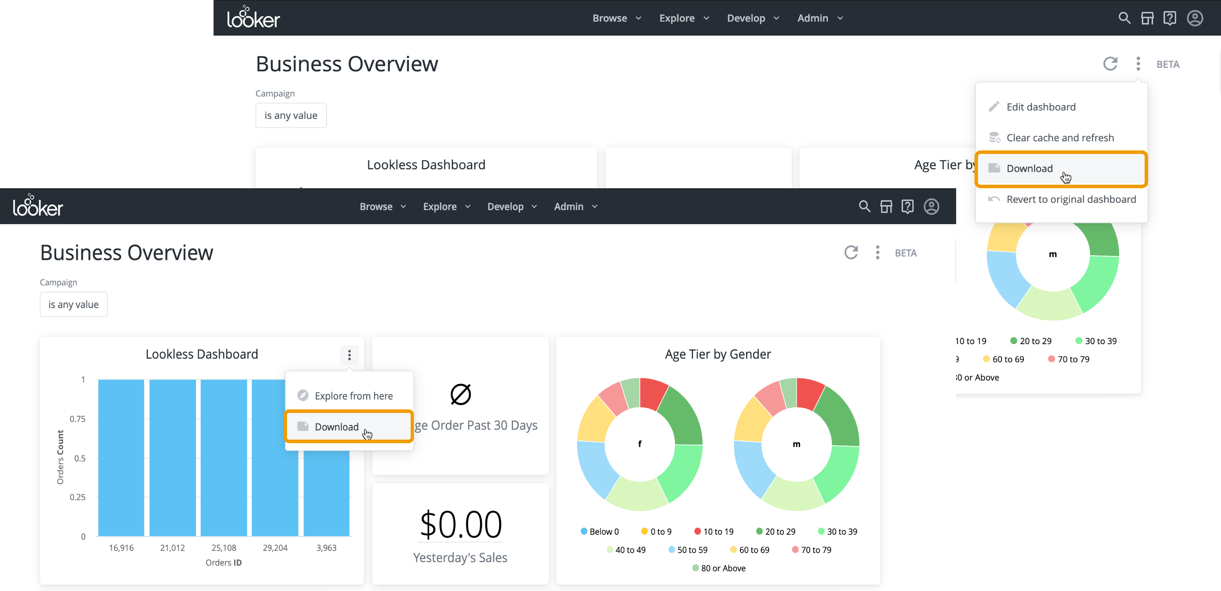Looker の新しいダッシュボード機能ー以前のダッシュボード(ベータ版)ーは、Looker のデフォルトのダッシュボード エクスペリエンスになりました。