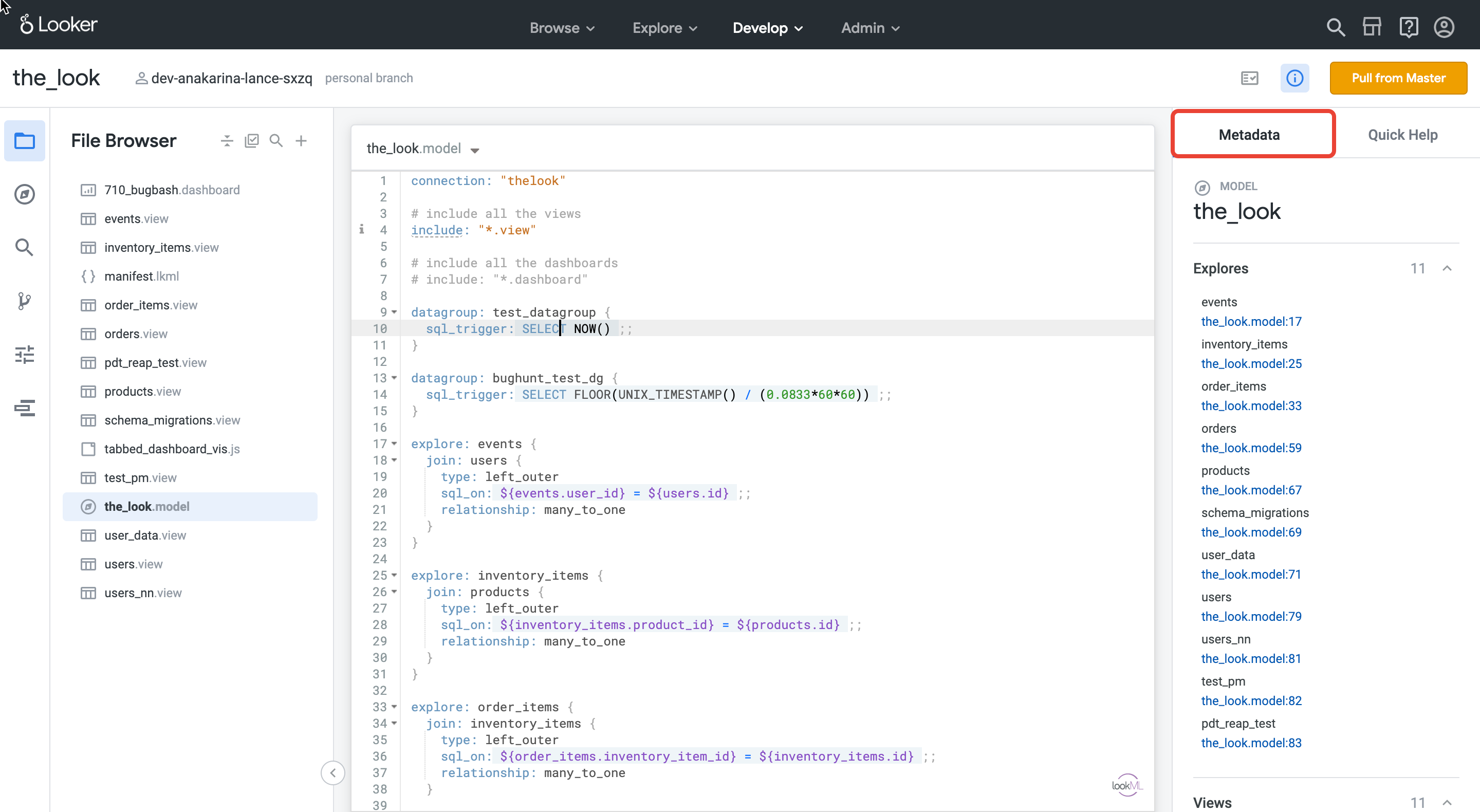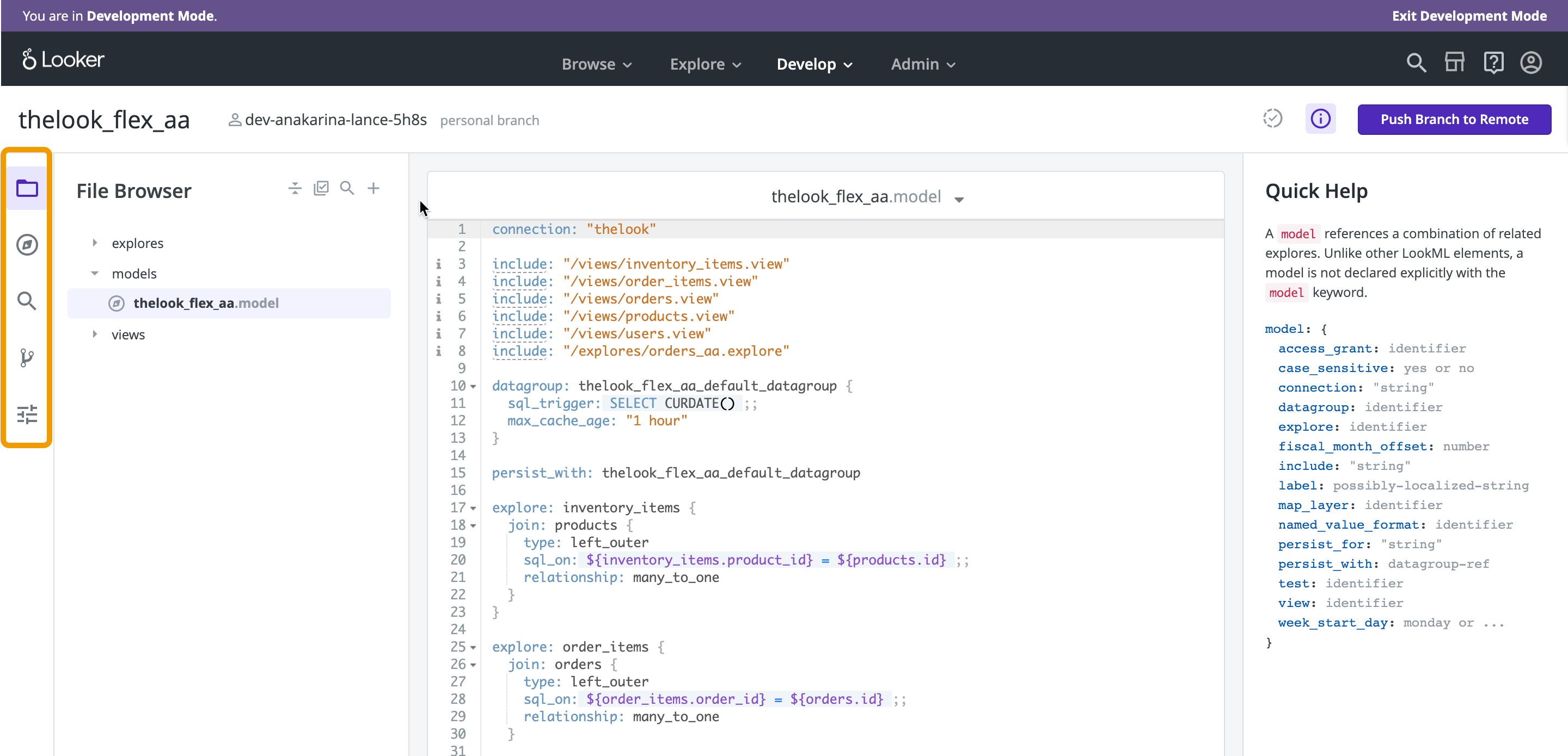 - LookMLリファインメントにより、ユーザーはプロジェクトのビューとExploreのLookMLをベースにビルドできます。