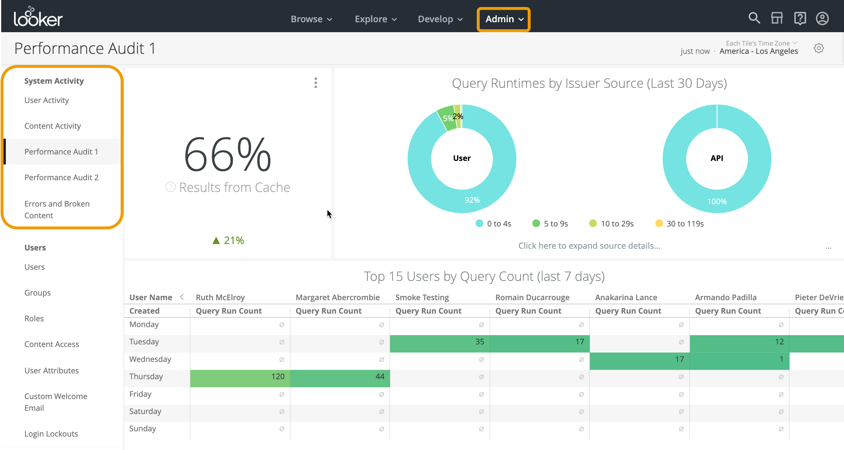 - 論理的また実用的な方法で改良および再編成されたダッシュボードにより、Lookerインスタンスのより効率的なモニタリングをユーザーに提供します。詳しくは、システム アクティビティ ダッシュボードについての記事をご覧ください。