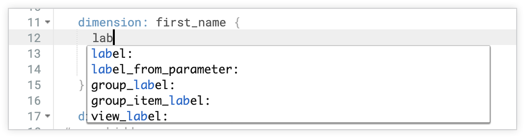 Le sezioni seguenti descrivono alcune delle funzionalità di modifica dell'IDE di Looker che possono aiutarti a sviluppare in LookML: