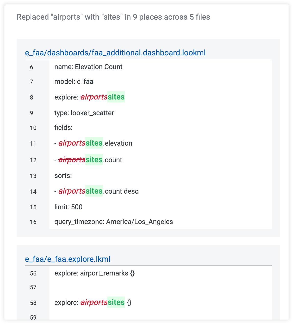 The Looker IDE has a find and replace function, which you can use to search all your project files for text and then replace all instances or selected instances in a bulk operation.