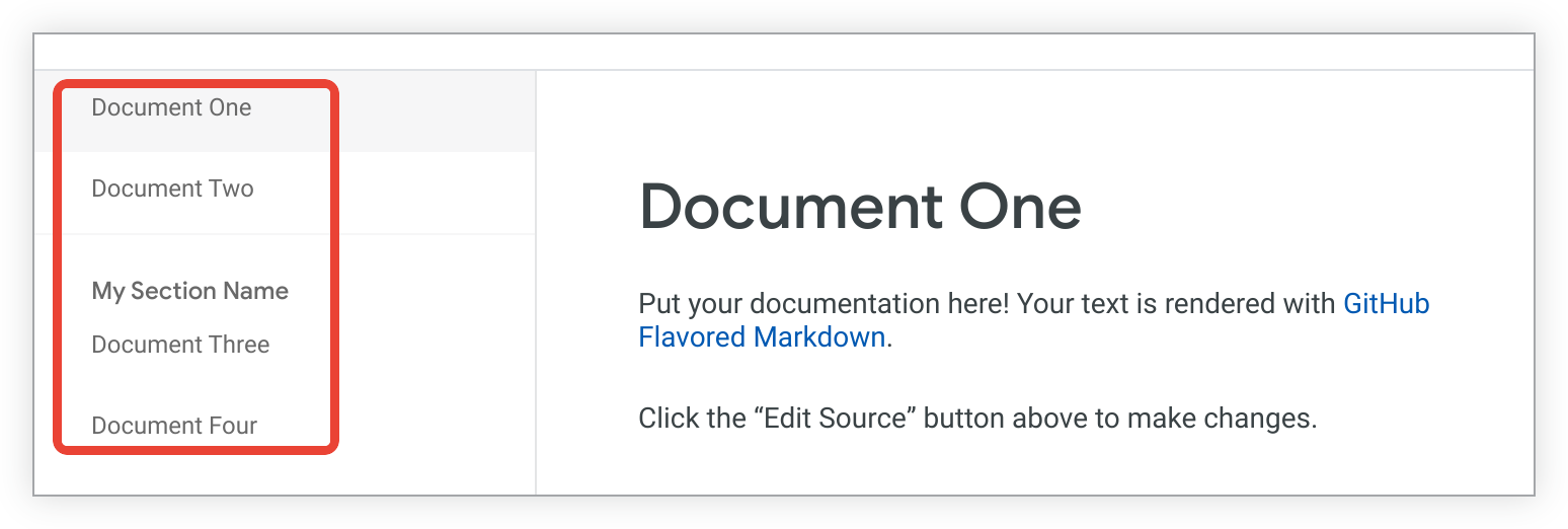 上記の例は、ドキュメントのサイドバーに次のように表示されます。