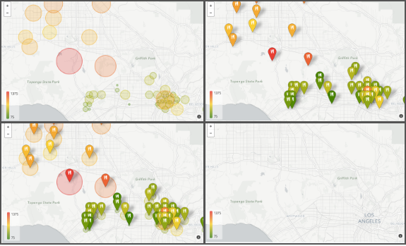 Sie können jede Zeile in einer zugrunde liegenden Datentabelle als separaten Punkt auf der Karte darstellen.