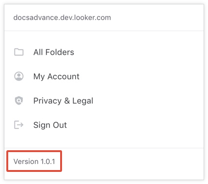 如要在行動裝置上查看 Looker 應用程式的版本號碼,請在行動應用程式的底部導覽選單中選取「更多」。版本號碼會顯示在「登出應用程式」選項後方。