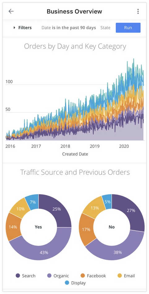 - Dashboard filters: Shows any dashboard filters that have been added to a dashboard. You can temporarily change dashboard filter values while in the app to see how the data changes.