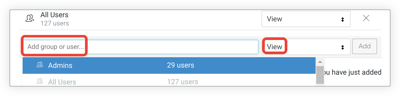 Für ein Board können einem Nutzer oder einer Gruppe zwei Zugriffsebenen zugewiesen werden: Ansehen und Zugriff verwalten, bearbeiten.