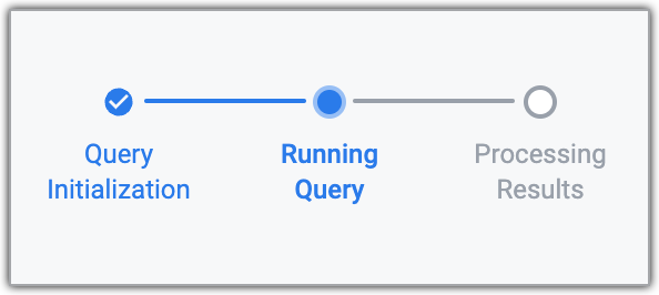 O rastreador de consultas do recurso Detalhar mostra o progresso de uma consulta do recurso nas três fases da consulta enquanto ela está em execução.