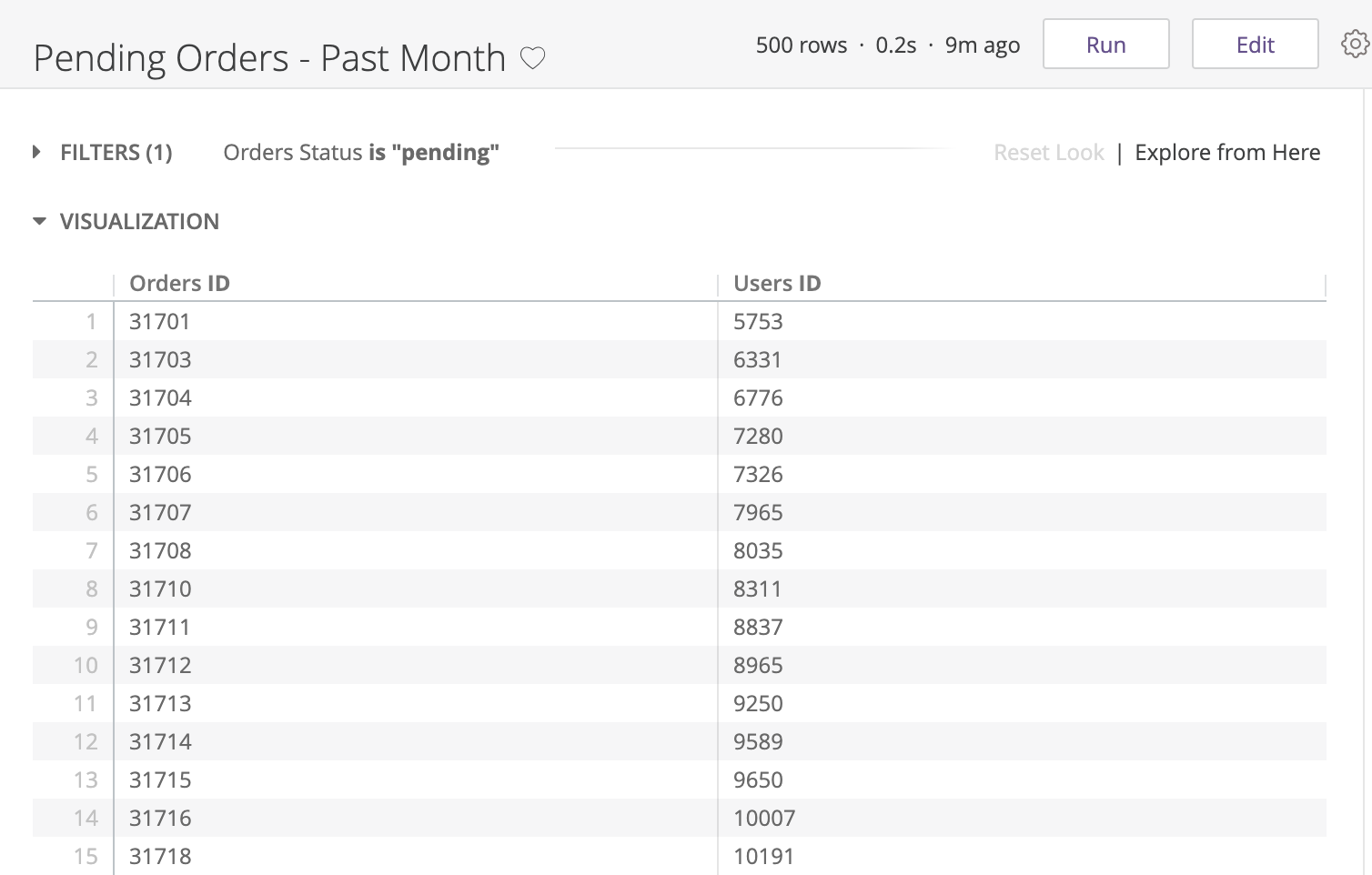 Here, the URL has been shortened to limit=500, which limits the Explore results to 500 rows, for clarity — you can include the rest of the URL, which typically includes URL encoding of visualization settings, as necessary.
