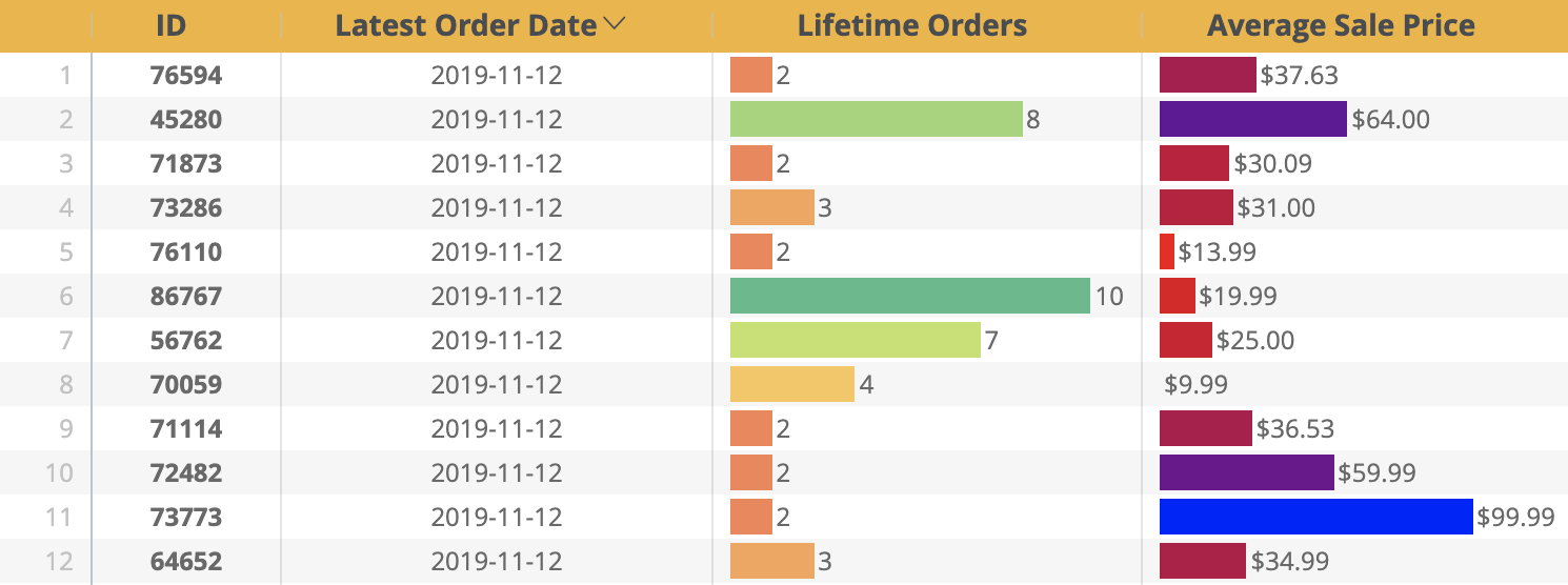If two dimensions are specified, the first dimension is placed on the y-axis and the second dimension is placed on the x-axis. If multiple measures are specified, each measure becomes a y-axis series. If pivots are present, each pivot and measure combination becomes a y-axis series. If no measures are specified, two dimensions can be plotted.